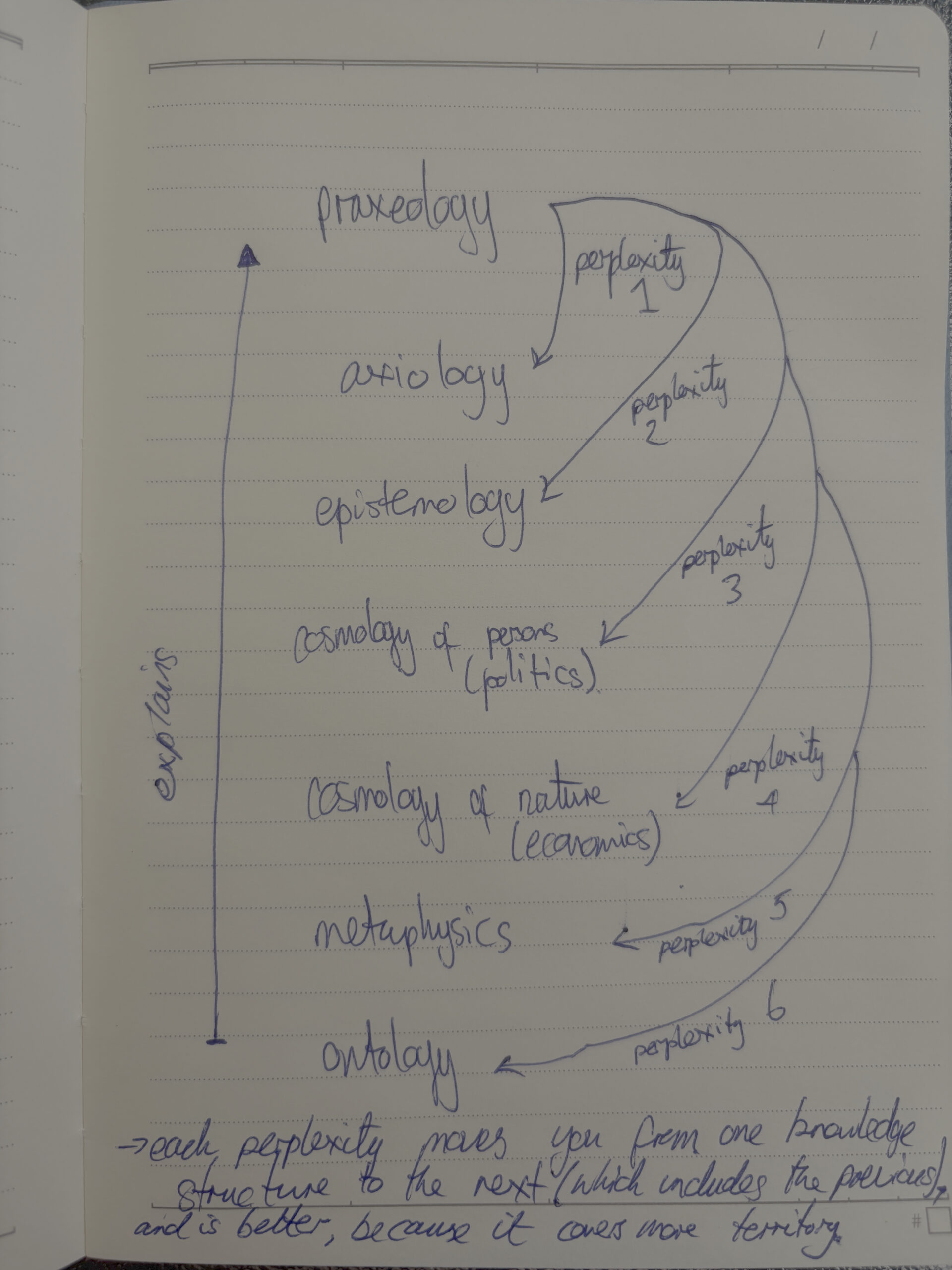 The resolution of each perplexity moves you from one knowledge structure to the next one; which includes the pervious one(s) and is better, because it covers more territory. As in the attached sketch image.